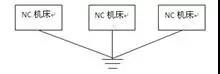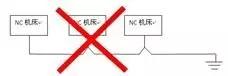 機床應采用圖1的單獨接地法或圖2的共用接地法,不能按圖3的方法接地: